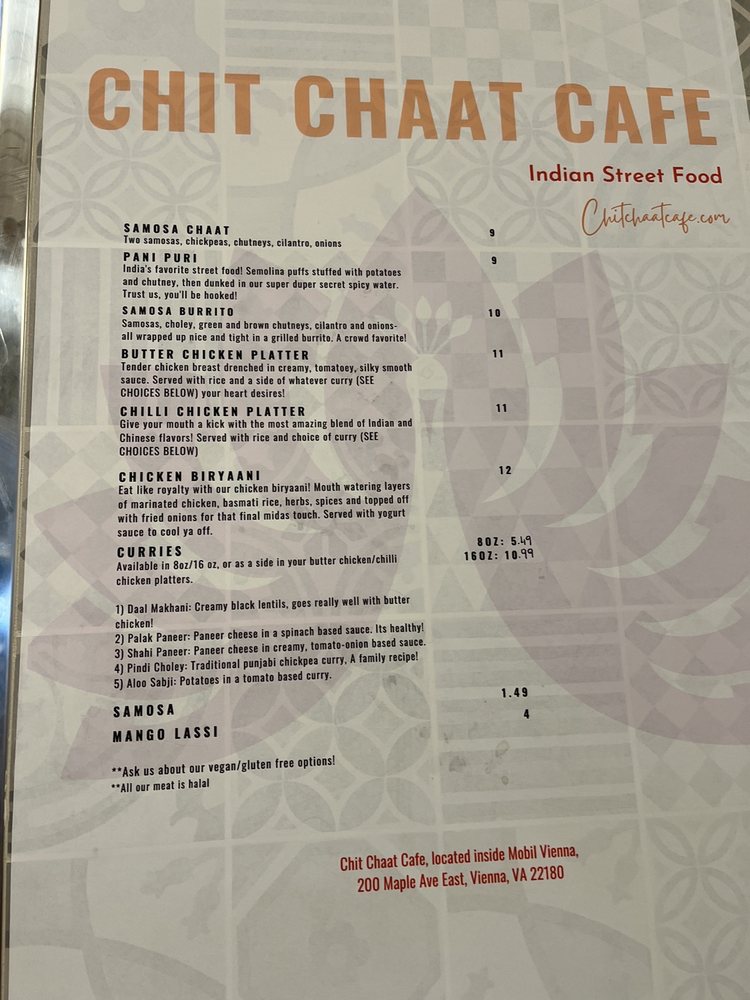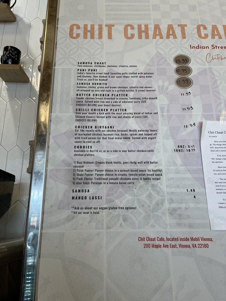 Welcome to Chit Chaat Cafe, a delightful gem located at 200 Maple Ave E, Vienna, VA. This vibrant Indian café specializes in chaat, a traditional street food brimming with bold flavors and comforting textures. Here, you'll discover a tantalizing menu that features classics like Samosa Chaat, a savory medley of fried samosas, chickpeas, and vibrant chutneys, and Bhel Puri, where crispy puffed rice dances with tangy tamarind and fragrant herbs.